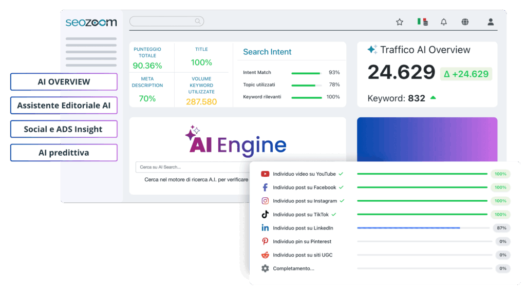 SEOZoom helps you get found by the right people, wherever they start their buying journey: Google, Social, and AI Engines.